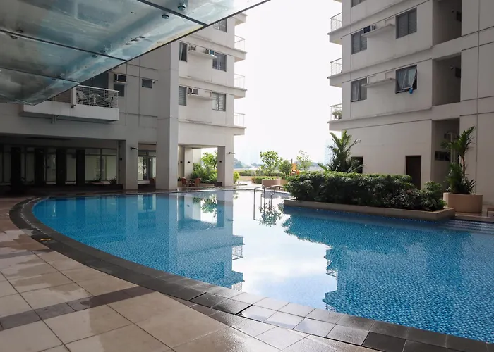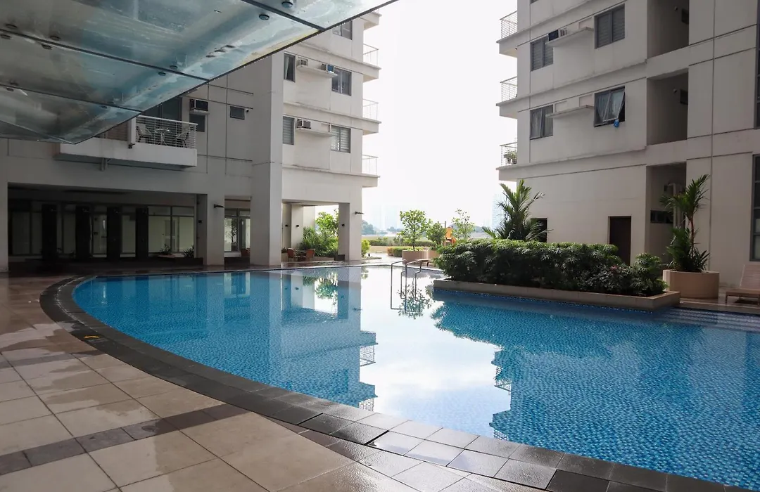 プールを提供するベッドルーム1室のCozy 2Br Condo With Parking マニラ市は、Trinity University of Asiaから徒歩でたった6分です。 ビジネスとレジャーの両方の目的でWiFiを利用できます。